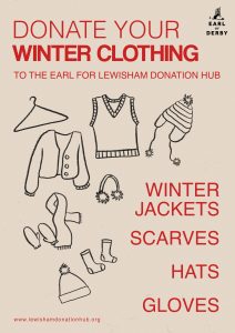 We are asking you all to donate your winter clothing to The Earl to go to Lewisham Donation Hub. It’s a very difficult time of year for many Londoners to keep warm and we would like to do our part. Just hand your items over to the bar and we will do the rest.