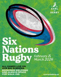 Catch the Six Nations on our screens! Every fixture, live at The Earl. Make sure to book a table to secure a good space, hit the ‘BOOK NOW’ button and add a note that you want to be up front and centre for the game.